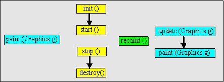 Toute applet hérite de l'objet Applet un certain nombre de méthodes qui sont appelées par le navigateur de manière bien précise lors de son exécution .